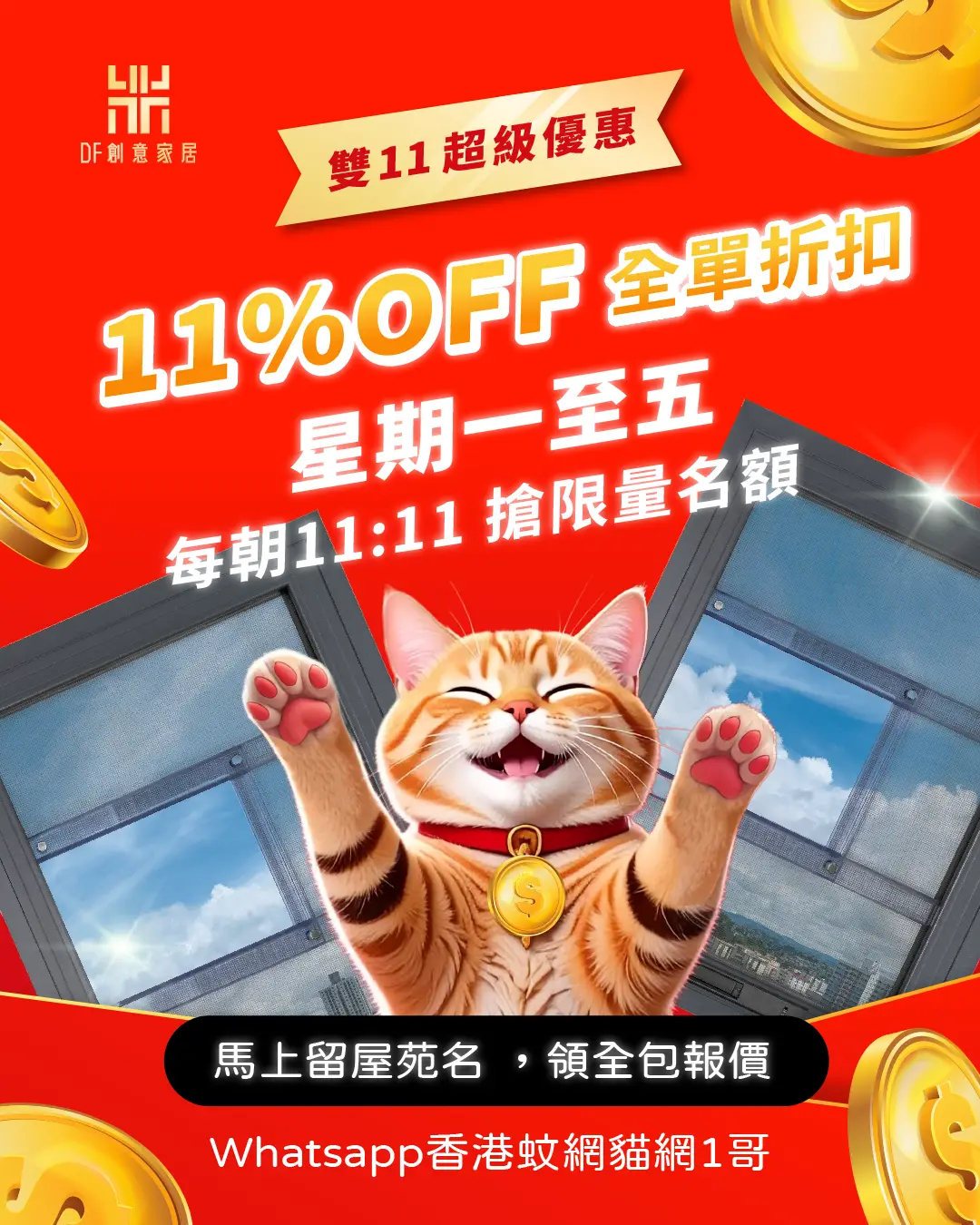 好消息‼️好消息‼️走勻全港18區,去咗幾百個屋苑,為超過20,000個單位安裝窗花蚊網貓網嘅DF創意家居推出全港首個窗網優惠盲盒🎁。