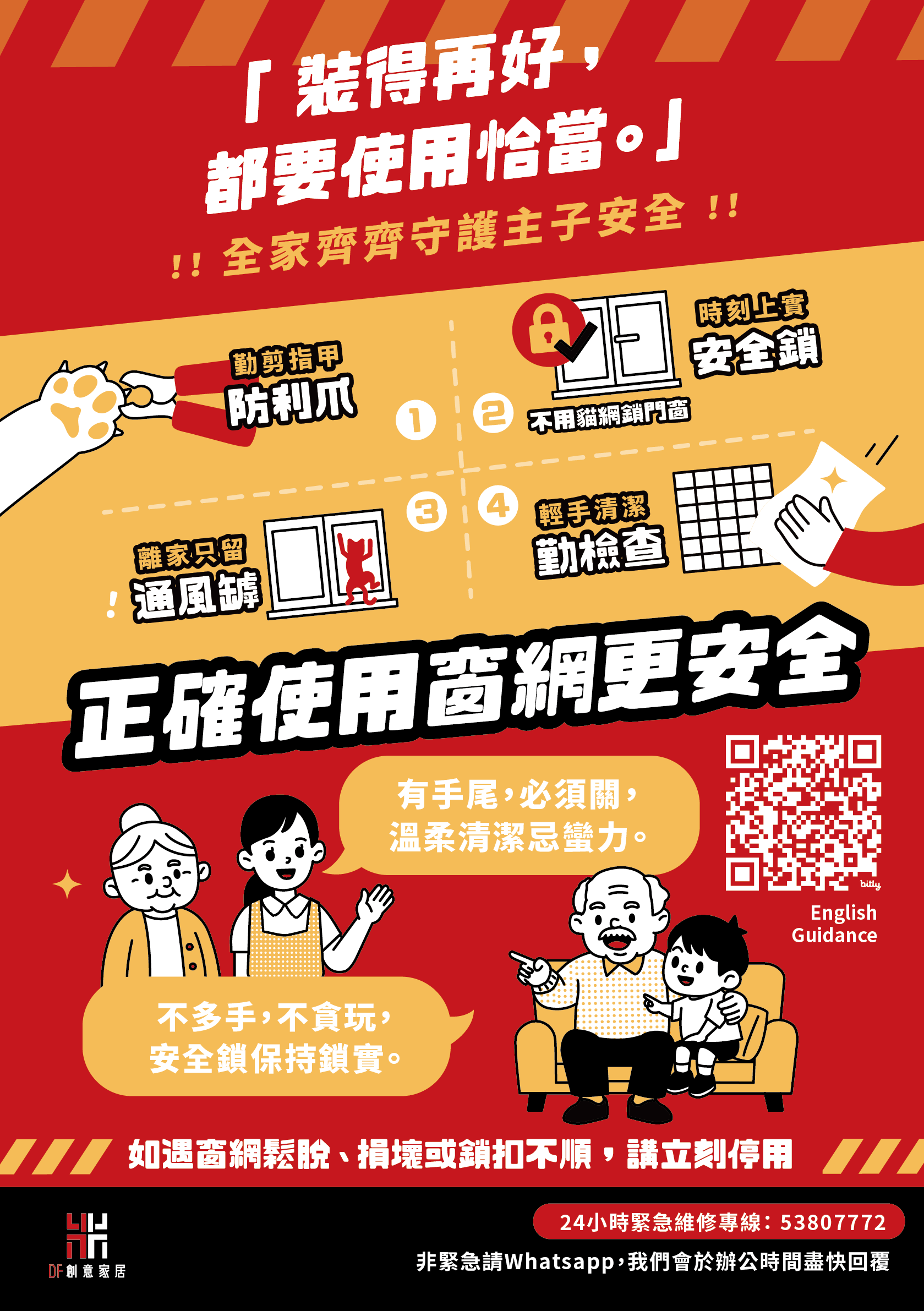 – 貓網/蚊網/透明窗花/防貓網2.0:凡購買任何一款產品即享免費送貨及安裝。